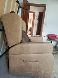 Poltrona relax elettrica nuova, in pelle, con sistema automatico alza persona, roller e antidecubito. Molto bella e armoniosa con qualsiasi arredamento