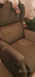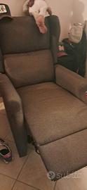 vendo poltrona color marrone. in tessuto/stoffa. reclinabile e con poggia piedi manuale. PERFETTA.