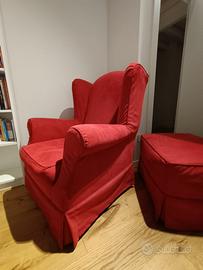 Vendo elegante poltrona imbottita color rosso (sfoderabile) con pouf coordinato, molto comoda e accogliente. Ideale per angolo lettura, salotto o cameretta.