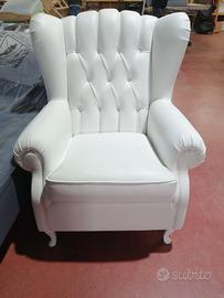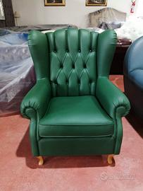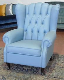 Poltrona Bergere' in Vera Pelle vari colori Immergiti nel comfort e nell'eleganza senza tempo delle nostre splendide poltrone in stile Chesterfield Bergere'(schienale alto a orecchioni). Perfette per aggiungere un tocco di classe e raffinatezza al tuo soggiorno, studio o ufficio. Caratteristiche Principali: Design Iconico: Il classico capitonné sullo schienale, i braccioli arrotolati e le ali laterali conferiscono un look distintivo e avvolgente. Materiali di Alta Qualità: Realizzate con cura artigianale e rivestite in vera pelle, garantendo durata e una piacevole sensazione al tatto. Comfort Superiore: L'ampia seduta e lo schienale ergonomico offrono un supporto eccezionale per momenti di puro relax. Varie Collezioni e Colori: Disponiamo di diversi modelli e finiture per adattarsi perfettamente al tuo stile. Verde Classico: Perfetta per un ambiente tradizionale e sofisticato. Bianco Puro: Ideale per interni moderni o per creare un contrasto elegante. Azzurro Pastello: Aggiunge un tocco di originalità e luminosità. Verde Smeraldo Intenso: Un colore audace e lussuoso. Marrone Cuoio Chiaro: Versatile e caldo, si integra facilmente in diversi contesti. Dettagli Curati: Piedini eleganti che completano l'estetica raffinata. Le poltrone sono da realizzare in circa 30gg. Dimensioni: Altezza: 104cm Larghezza: 85 cm Profondità: 85 cm