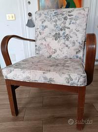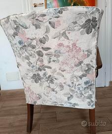 Fascinosa poltrona con braccioli in legno curvato, completamente sfoderabile, in perfette condizioni sia di struttura che di tappezzeria.