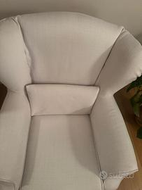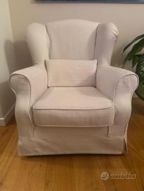 Vendo causa inutilizzo Poltrona imbottita in tessuto marca POLTRONESOFÀ Stile classico/provenzale Tessuto sfoderabile e lavabile Color crema chiaro Condizioni ottime Misure : 97H x 76P x 83L