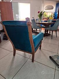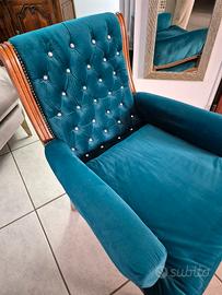 Splendida poltrona con motivo capitonne,antica, colore carta da zucchero, molto attuale. La poltrona è stata ritappezzata un anno va , ed è in ottime condizioni.piccoli segni provocati dal martello sullo schienale ,non visibile.