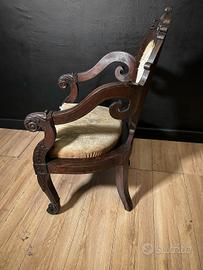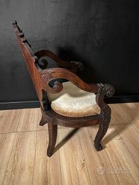 Elegante poltrona Carlo X in mogano massello, realizzata nella prima met