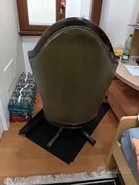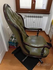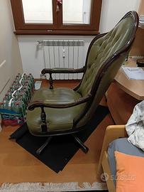 Poltrona cesterfild girevole in pelle e palissandro da studio o biblioteca.