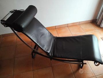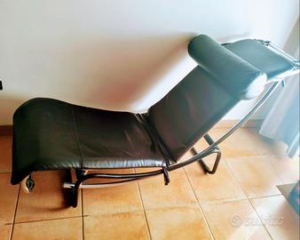 Fantastica poltrona chaise longue LC4 Le Corbusier Struttura in acciaio cromato lucido • Base in acciaio verniciato nero opaco • Rivestimento in vera pelle nera, morbida e resistente • Cuscino poggiatesta cilindrico regolabile • Linea ergonomica che garantisce comfort e sostegno • Icona del design moderno, adatta sia a salotti che a studi professionali Condizioni quasi pari al nuovo Pelle ben conservata, senza graffi o lacerazioni • Struttura solida, cromatura brillante, nessun difetto estetico rilevante