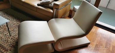 Vendo poltrona Chaise Loungue modello SNAKE di POLIFORM in pelle colo panna completa di poggiapiedi originale. mai usata come nuova lunghezza con poggiapiedi 135 cm.