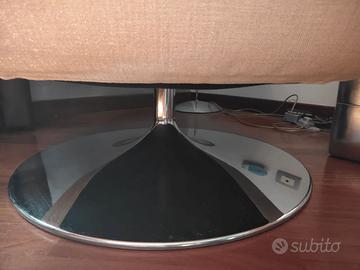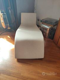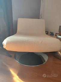 Poltrona chaselongu con base tonda in acciaio , tessuto beige glitterato.