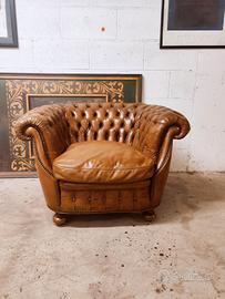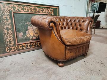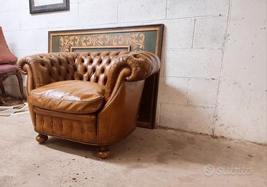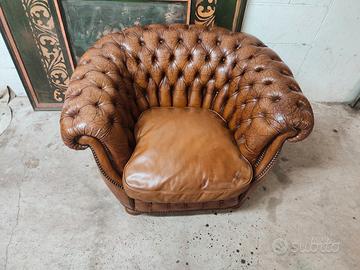 Poltrona Club Chester Chesterfield in vero cuoio inglese vintage ad indicare l autenticita' e lo stile. Ideale per studi , locali e saloni particolari,coppia poltrone e divano 2 e 3 posti abbinati disponibili misure cm 1,10 80 70 cm di altezza Spedizione in tutta Italia economica e veloce .Per info 3246236227