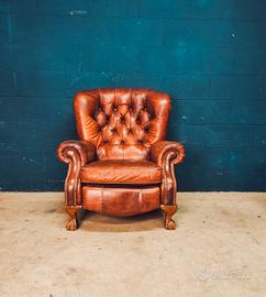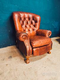 Poltrona con sistema relax Queen Anne Bergere stile Chester stile Chesterfield in vero cuoio british inglese con certificazione ad indicare l autenticita' e lo stile. Ideale per studi , locali e saloni particolari,coppia poltrone e divano 2 e 3 posti abbinati disponibili misure cm 95 90 1,20 cm di altezza Spedizione in tutta Italia economica e veloce .Per info 3246236227