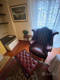 Poltrona Chesterfiel vintage originale inglese Queen Anne in pelle bordeaux. Poggiapiedi Chesterfield vintage originale inglese Queen Anne in pelle bordeaux No spedizione