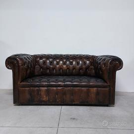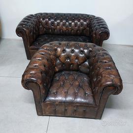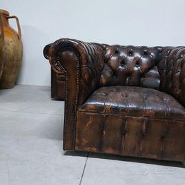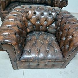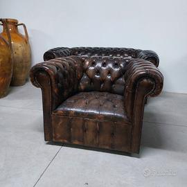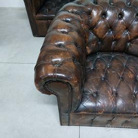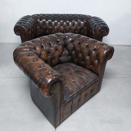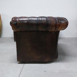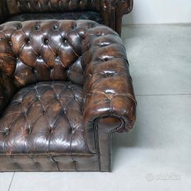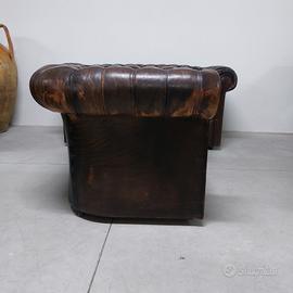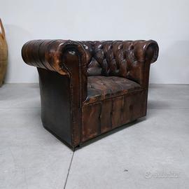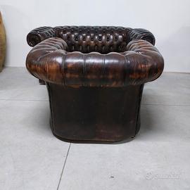 Poltrona chesterfield club originale inglese anni 1950 circa realizzata in vera pelle marrone cuoio Testa di Moro.