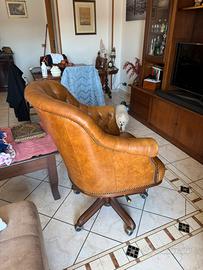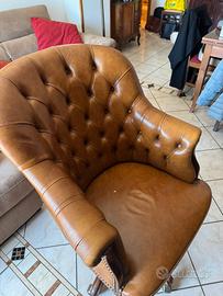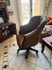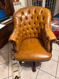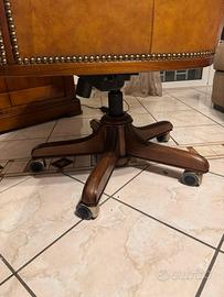 Poltrona Chesterfield Director da Ufficio girevole di lusso. Elegante Poltrona d’epoca anni 50 stile Inglese seduta girevole e regolabile in altezza , poltrona usata generalmente da notai e avvocato. Piedi in noce e seduta con schienale in vera pelle finemente punzonata sul contorno. Solida, comoda e di grande fascino, ideale per studi professionali, uffici di Elegante poltrona d’epoca dei primi del ’900, in vera pelle finemente punzonata, stile inglese. Solida, comoda e di grande fascino, ideale per studi professionali, uffici di rappresentanza o ambienti classici ( notai , avvocati e studi di alta rappresentanza) Un pezzo unico che dona prestigio e carattere a qualsiasi spazio. Ottime condizioni. Un pezzo unico che dona prestigio e carattere a qualsiasi spazio.