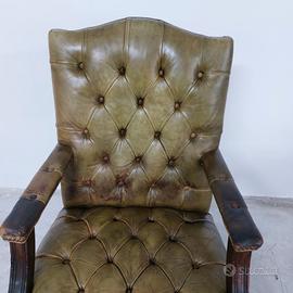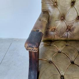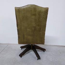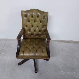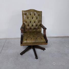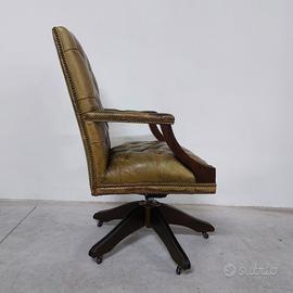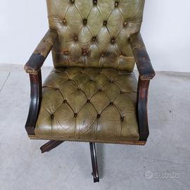 Poltrona chesterfield director girevole originale inglese anni 1950-1960 in vera pelle.