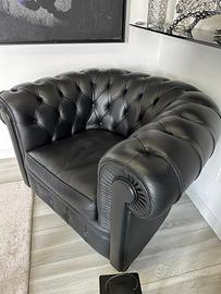 Vendesi poltrona Chesterflield nera, in pellle. Usata ma in condizioni perfette. Eventualmente disponibile anche divano Chesterfiled a 3 posti, nero in pelle (usato ma in lttome xondizioni)