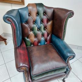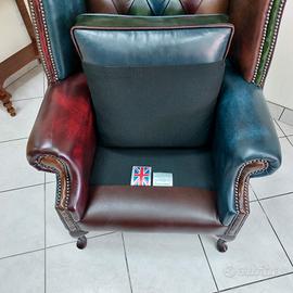 Poltrona chesterfield Queen Anne originale inglese nuova modello Patchwork Harlequin.