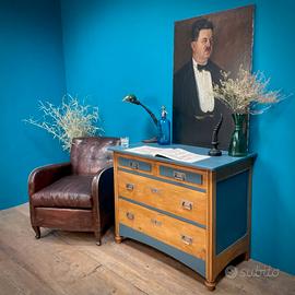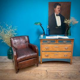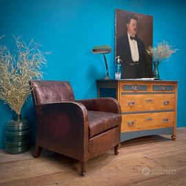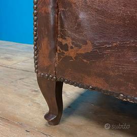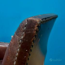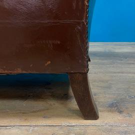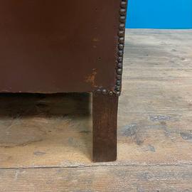 Stato di conservazione buono, tessuti sani e imbottiture rifatte di nuovo, la pelle è originale e consumata rendendo questo pezzo molto affascinante e vissuto, ogni segno sulla pelle racconta una storia.