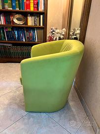Vendo poltrona di colore verde. Materiale morbido. Comoda. Tessuto stile velluto. Misure 70 (larghezza), 65 (profondita), 71 (altezza).