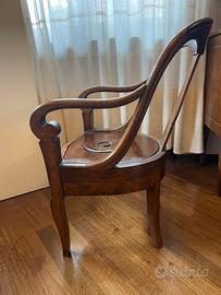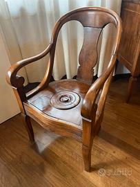 Poltrona lombarda di inizio secolo XIX detta “comoda” di Foggia “en gondole”. In noce. Completamente restaurata e la seduta rifoderata dal tappezziere.
