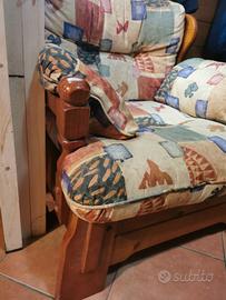 Vendo per motivi di spazio una poltrona in legno massello e imbottitura in tessuto stile baita, imbottitura spessa e comododa con tessuti molto resistenti