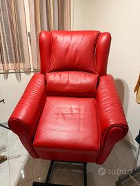 Poltrona usata in vera velle rossa italiana con alzata assistita. Si puo impiegare per pesi importanti e diventa quasi un letto. Telaio completamente in acciao molto resistente. In ottimo stato. Si alza la seduta, si abbassa lo schienale e si allunga il poggiapie.