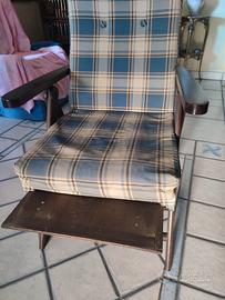 Poltrona con braccioli. Legno e stoffa. Usata pochissimo negli anni. Vano estendibile per gambe con cuscino. Ritiro a mano in zona piazza Carlo 3. No spedizione.
