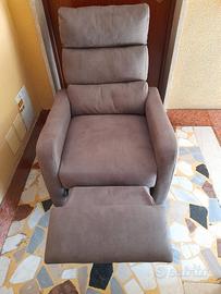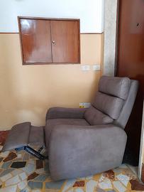 Poltrona con pedana allungabile NON automatica elettricamente, bensì meccanica. Tramite la leva posta a destra della seduta da una poltrona semplice diventa con la pedana allungabile. in ottime condizioni. altezza 1mt larghezza 65cm profondità 75cm