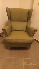 vendo in ottime condizioni comoda poltrona Ikea color verde salvia con puffo della stessa tinta.