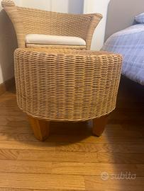 Poltrona con pouf da interno in rattan/bamboo intrecciato con cuscino