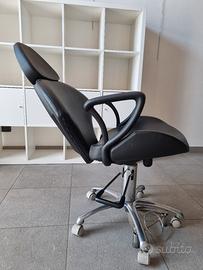 POLTRONA CON ROTELLE per barbieri estetiste o per comodità, in similpelle nera. Schienale reclinabile. Pompa idraulica di sollevamento. Freno. 2 poggiatesta, uno piccolo ed uno più grande. Poggiapiedi rimovibile. Usata qualche volta per il make-up. Adatta per centri estetici, barbieri, parrucchieri o per casa. Ottime condizioni. Ritiro a mano a Vaprio D’Adda (MI)