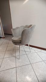 poltrona a conchiglia in velluto grigio con gambe cromate nuova mai usata, con ancora il cartellino