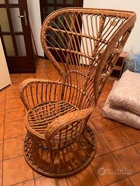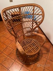 Vendo poltrona in rattan/vimini stile vintage, modello “Pavone”, attribuita a Lio Carminati con collaborazione di Gio Ponti (anni ’50). Design iconico con schienale alto a ventaglio, molto scenografica e perfetta per salotto, studio o veranda. Ottime condizioni, struttura solida. Dimensioni: 82 x 120 cm Prezzo: 650 € Ritiro a mano. Non spedisco Zona Mantova e provincia