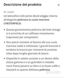 Vendo poltrona Chesterfield imbottita in cuoio di Maisons du monde.