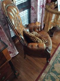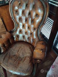 poltrona d epoca fino 1800 Filippo secondo, da fare piccolo restauro, ma in ottime condizioni generali e qualità lusso , pelle vera, misure 75 cm larghezza x 117 cm altezza trattabile ritiro in loco