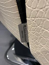 E’ reclinabile con la levetta e ha il pedale per regolare l’altezza. Finiture effetto coccodrillo.
