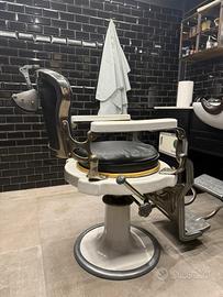 Vendo bellissima poltrona da barbiere originale anni ’20, marca Amata Regina Parma, pezzo raro e da collezione.