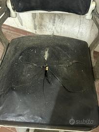 Schienale e seduta in similpelle nera, con segni del tempo e strappi (da rifare).