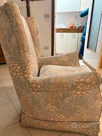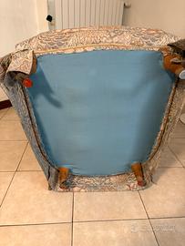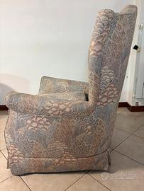 Poltrona da camera anni ‘60 rifoderata di recente e in ottime condizioni. Altezza 105cm, larghezza max 70cm, alla base 62cm, profondità 63cm, altezza della seduta 45cm.