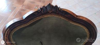 Caratteristiche: Schienale spesso a medaglione e braccioli a giorno.