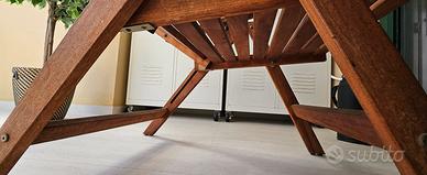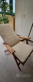 Poltrona da esterno applaro ikea marrone dotata di rivestimento beige. La poltrona va semplicemente rinnovata con l'uso di olio mentre il rivestimento è usato pochissimo.50 € ritiro in loco