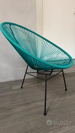 Poltrona da giardino rotonda in acciaio nero e resina verde celadon (come da foto)