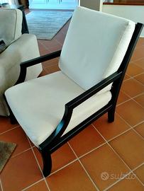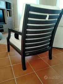 Poltrona da lettura in legno massello laccato nero con cuscini 100% cotone sfoderabili e lavabili, realizzazione artigianale a misura come pezzo unico