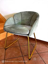 Poltrona da salotto o camera da letto. Imbottita, alta, moderna, ergonomica in velluto con schienale circolare con braccioli. Gambe in metallo con una portata massima di 136kg. Colore grigio chiaro