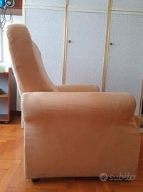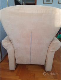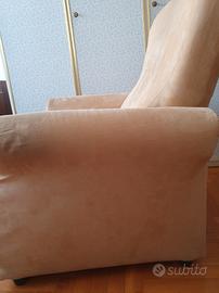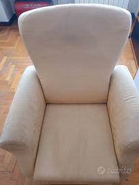 Vendo comoda poltrona da salotto dal design classico e accogliente. Un elemento d'arredo versatile, ideale per arricchire la zona living, una camera da letto o un angolo lettura con un tocco di semplicità e calore. Caratteristiche: Materiali e Design: La poltrona presenta linee morbide e arrotondate, caratterizzate da uno schienale alto e braccioli ampi. È rivestita in un piacevole tessuto morbido al tatto (effetto microfibra/alcantara) di colore beige, una tinta neutra e luminosa, facile da abbinare a qualsiasi stile di arredamento. Rivestimento: Pratica e funzionale, la struttura è dotata di una lunga cerniera posteriore (ben visibile nelle foto allegate) che la rende sfoderabile per agevolare il lavaggio e la manutenzione del tessuto. Dettagli: La seduta è profonda e poggia su solidi e discreti piedini scuri cilindrici che rialzano leggermente la struttura da terra. Condizioni: L'oggetto è in ottime condizioni strutturali ed estetiche. L'imbottitura è ancora compatta e ben sostenuta, e il tessuto non presenta strappi, scuciture o buchi. È stata conservata con grande cura infatti è in condizioni quasi come nuova. Ritiro a mano a Torino (zona Santa Rita). Disponibile per altre foto. Prezzo Trattabile