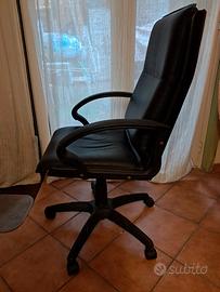 poltrona da ufficio su ruote, in pelle nera un poco consumata negli angoli come da foto ma per il resto in ottime condizioni