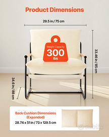 • Venditori Affidabili di Esperienza • Spediamo ovunque, anche in Contrassegno • Vendiamo solo articoli Nuovi di prima qualità • Contattaci per qualsiasi info necessaria Design moderno ed elegante: con il suo tessuto morbido e le linee pulite, questa poltrona unisce stile classico e moderno al comfort. Le sue linee eleganti e la robusta struttura in acciaio la rendono un complemento d'arredo ideale per soggiorni Morbida e accogliente: imbottita in schiuma ad alta densità e caratterizzata da una forma semi-reclinabile, la nostra poltrona lounge sostiene il corpo e la parte bassa della schiena per ore di comfort Telaio robusto: questa moderna poltrona reclinabile è dotata di un telaio in ferro elegante e robusto e può sostenere fino a 135 kg. I piedini antiscivolo aumentano la stabilità e proteggono il pavimento dai graffi Comfort in ogni centimetro: con una dimensione complessiva di 88 x 75 x 85 cm, una seduta larga 27,56 pollici (70 cm) e braccioli alti 21,7 pollici (55 cm), questa moderna poltrona offre una seduta spaziosa e confortevole Montaggio facile e veloce: la nostra poltrona lounge è dotata di tutti gli accessori necessari e di istruzioni dettagliate. Puoi montarla in soli 15-30 minuti, senza alcuno sforzo aggiuntivo