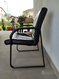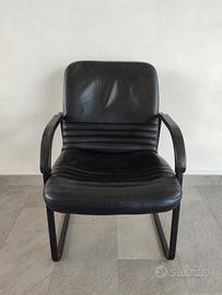 Poltrona nera perfetta per studio, sala d'attesa o altro spazio comune. Poltrona utilizzata ma in buone condizioni, comoda con braccioli. Materiale pelle di colore nero, plastica dura e metallo.