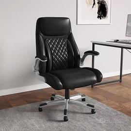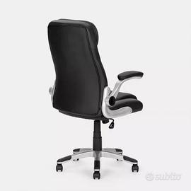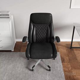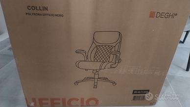 Sedia girevole imbottita in similpelle nera. Acquistata dalla Deghi e mai uscita dal cartone originale. Serie - Collin Caratteristiche Braccioli imbottiti | Con poggiatesta | Ruote in nylon | Schienale alto | Schienale imbottito | Seduta Imbottita | rotazione 360° | Regolazione basculante | Altezza regolabile Dimensioni 64 x 65 cm Prezzo di acquisto 169.99€