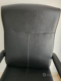Vendo sedia/poltrona ergonomica con rotelle in eco-pelle da ufficio in condizioni pari al nuovo, usata soltanto 1 anno durante il periodo covid e poi abbandonata. La sedia è in perfette condizioni, presenta soltanto un segno di usura sulla parte posteriore del bracciolo (foto su richiesta) per tutto il resto, l'eco pelle è pari al nuovo e non presenta difetti meccanici. Unica cosa da segnalare è un piccolo difetto estetico vicino al bracciolo sinistro nella parte posteriore di circa 3cm, per il resto la sedia è come nuova; Le rotelle e il pistoncino per la regolazione dell'altezza funzionano perfettamente. Per qualsiasi informazione, non esitate a contattarmi qui su subito. Viste le dimensioni dell'oggetto, preferirei ritiro a mano. Tag per la ricerca: Sedia, ufficio, sedia con rotelle, poltrona ufficio, poltrona con rotelle, sedia ufficio ergonomica, poltrona ufficio eco-pelle, poltrona scrivania