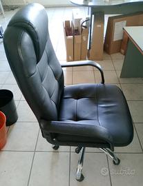 Poltrona da ufficio in ecopelle nera con ruote.